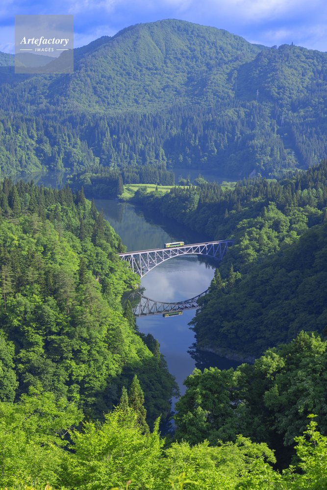 | 作品タイトル | 新緑の第一只見川橋梁を走る只見線 | モデルリリース | なし | |