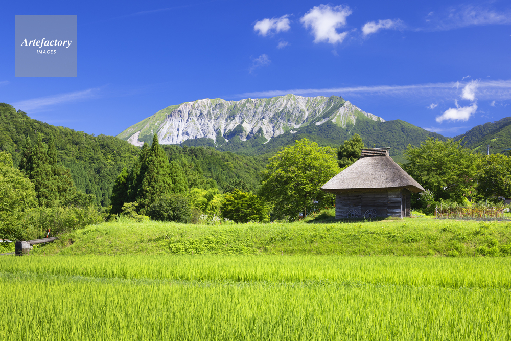| 作品タイトル | 夏の大山と茅葺き小屋 | モデルリリース | なし | |