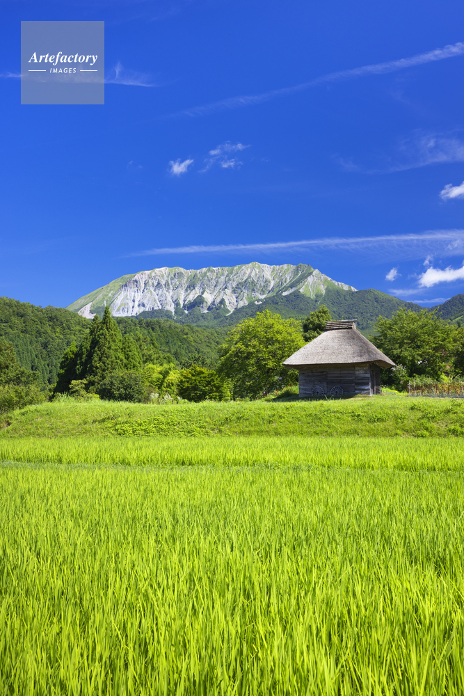 | 作品タイトル | 夏の大山と茅葺き小屋 | モデルリリース | なし | |