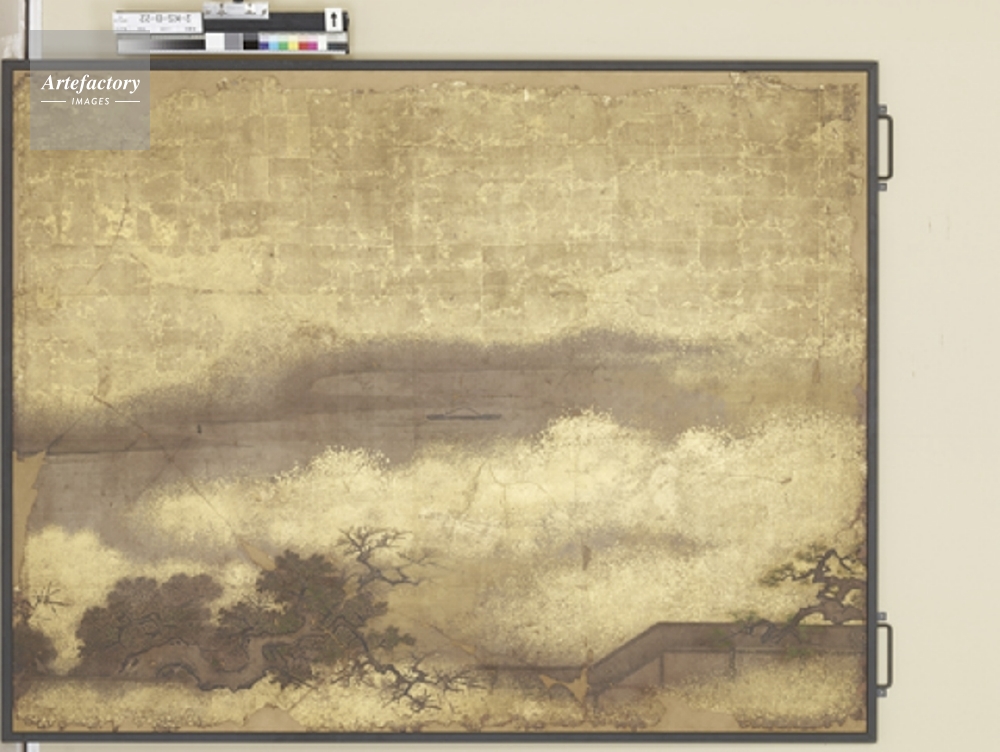 | 作品タイトル | 黒書院 二の間 長押上貼付 南面 東より2 紙本金地著色 楼閣山水図 重要文化財 | モデルリリース | なし | |