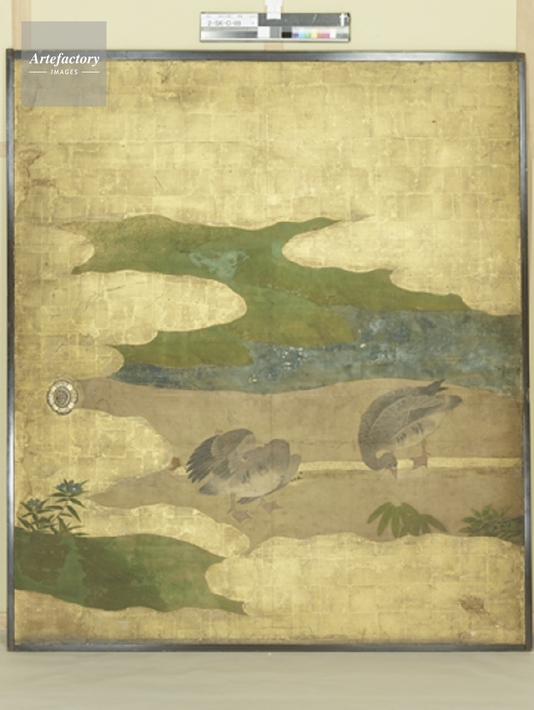 | 作品タイトル | 式台 老中二の間 襖 西面 北より2 紙本金地著色 芦雁図 重要文化財 | モデルリリース | なし | |