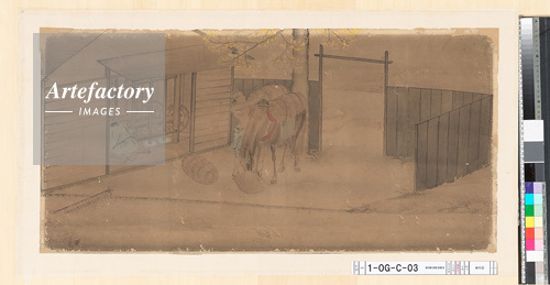 | 作品タイトル | 御常御殿 三の間 腰障子 北面 東より2 紙本著色 耕作図 | モデルリリース | なし | |