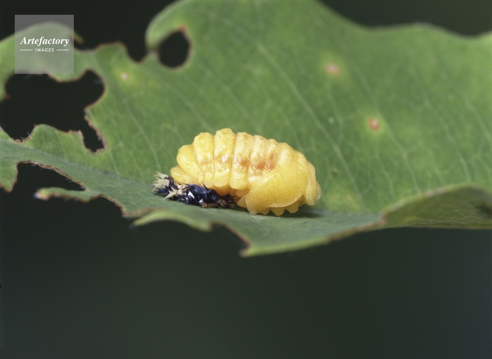 | キャプション | 365日出会う大自然 昆虫: 成虫で冬を越したナミテントウは、アブラムシを食べて卵を産む。幼虫が葉の上でじっと動かなくなると、じきに皮を脱いで蛹に変身する。蛹から生まれたばかりのナミテントウは薄い黄色をしているけれど、色がつくとさまざまな模様のテントウムシになる。 | 制限事項 | ||