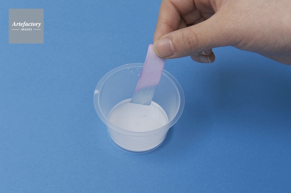 | 作品タイトル | pH試験紙を作る(ムラサキイモ色素液)③ | モデルリリース | なし | |