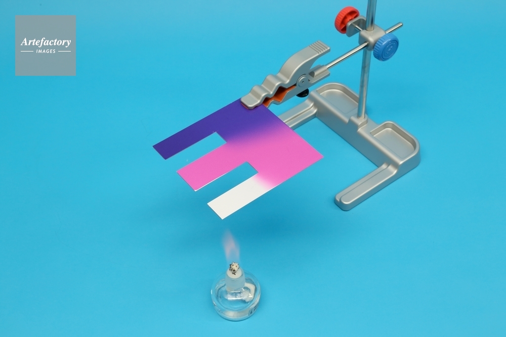 | 作品タイトル | 示温シールと銅板をアルコールランプで熱する実験 | モデルリリース | なし | |
