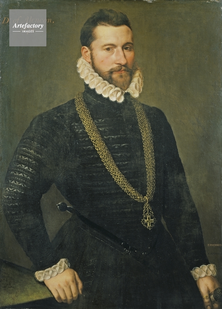 | キャプション | Half-length portrait of an unknown dark-haired nobleman in Spanish dress consisting of a puffed and slashed suit with alternate quilted bands. He carries a matching sword and left-handed dagger. 'D: of Alencon, / 1574' is inscribed on the upper left. | 制限事項 | ||