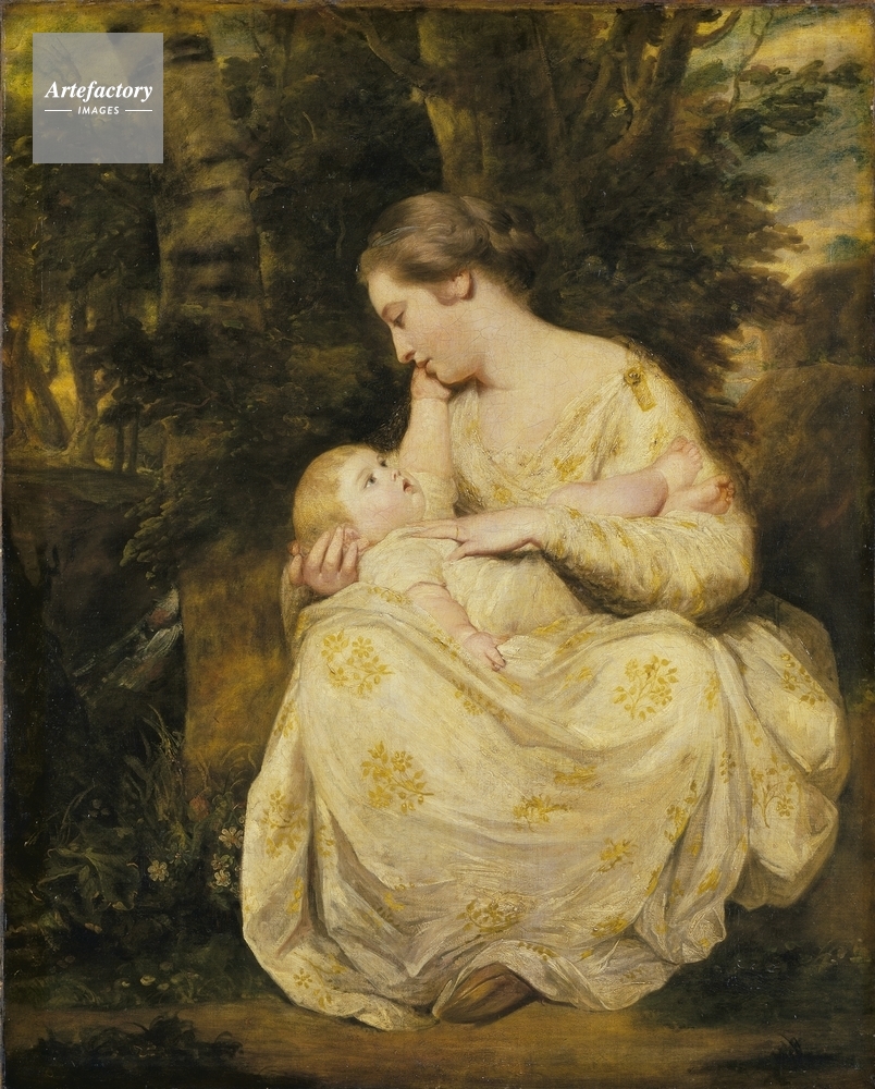| キャプション | Portrait of Mrs Susanna Hoare (1743-95) who is seated and cradling her fair-haired child in her lap. They are in wooded landscape. She has chestnut hair and wears a white dress with gold trimmings and brown slippers. | 制限事項 | ||
