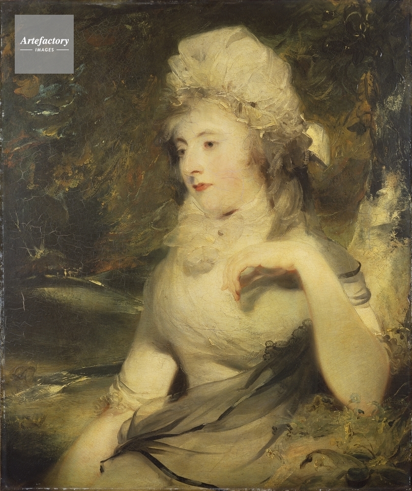 | キャプション | Portrait of an unknown seated lady (possibly Mrs John Angerstein (1777-1848)), with fair hair and grey eyes, dressed in white with a black gauze scarf. A deer park can be seen in the background to her left. | 制限事項 | ||
