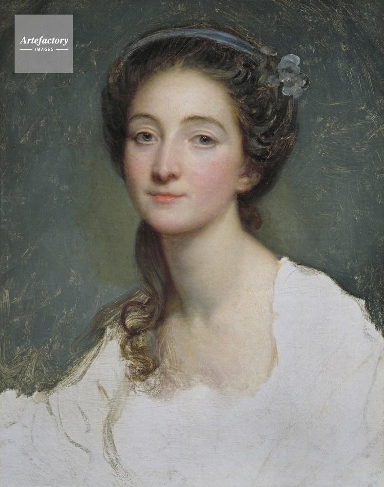 | キャプション | Half-length portrait of the actress-singer Sophie Arnould (1744-1802). She is dressed with a blue ribbon and white rose. She has blue-grey eyes and only the head is finished, the lower area showing the white ground. | 制限事項 | ||