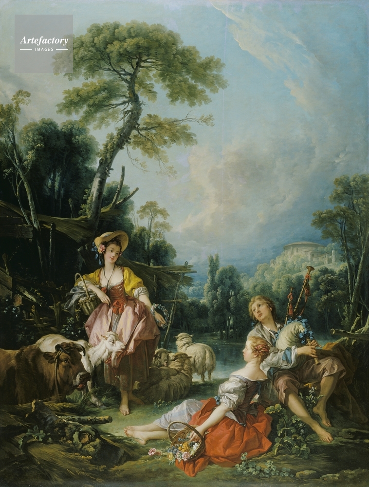 A second shepherdess reclines with a basket