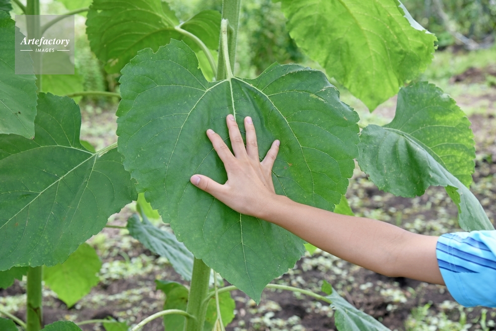 | 作品タイトル | ヒマワリ 葉と手の大きさを比べる | モデルリリース | なし | |
