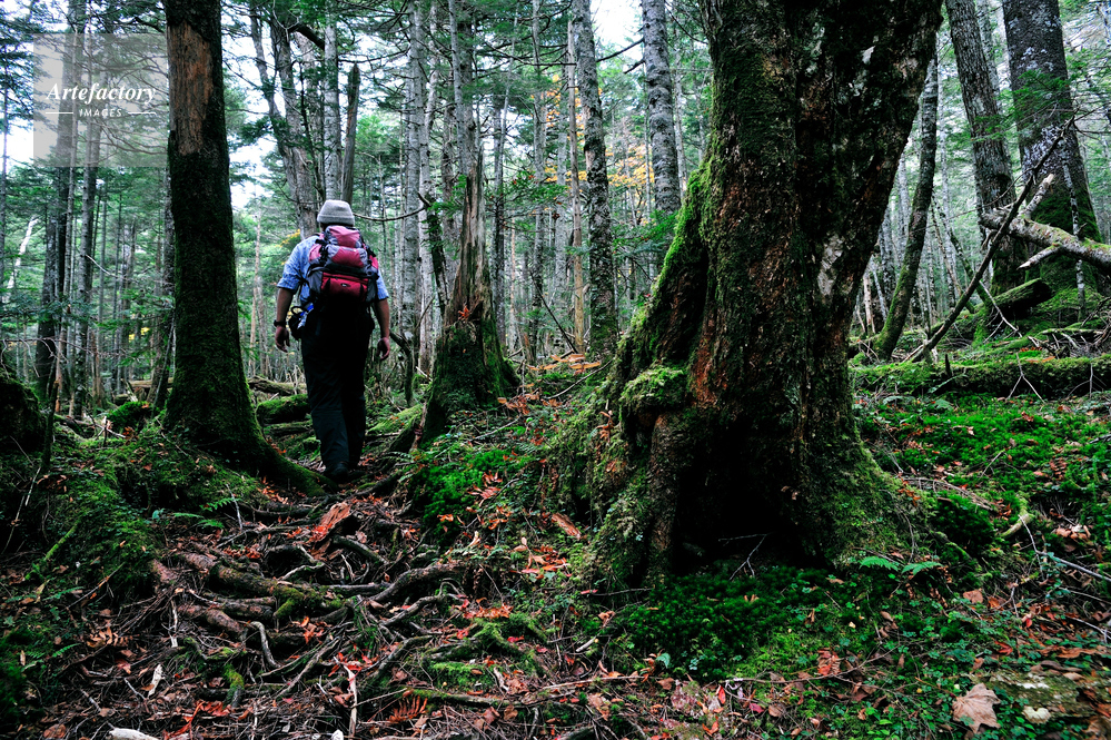 | 作品タイトル | 木曽御嶽山・濁河温泉 苔の森とハイカー | モデルリリース | なし | |