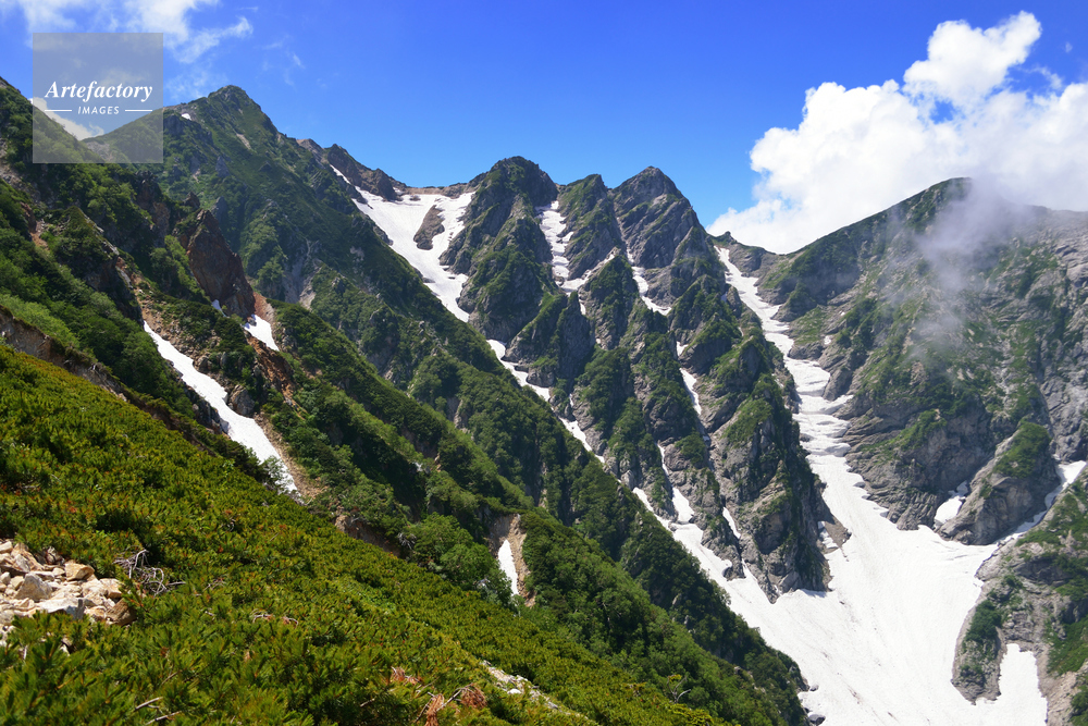 | 作品タイトル | 北アルプス・八方尾根から唐松岳(左)と不帰ノ嶮(中)望む | モデルリリース | なし | |
