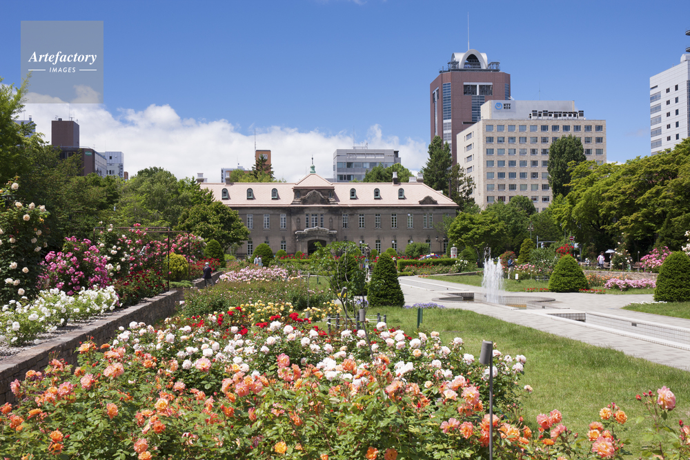 | 作品タイトル | バラ咲く大通公園と札幌市資料館 | モデルリリース | なし | |