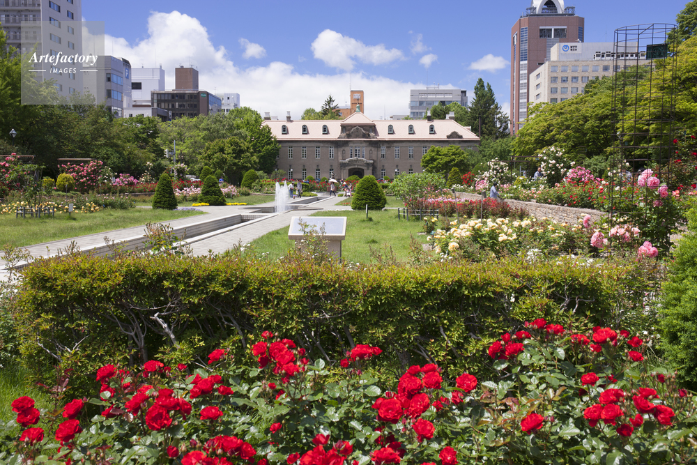 | 作品タイトル | バラ咲く大通公園と札幌市資料館 | モデルリリース | なし | |