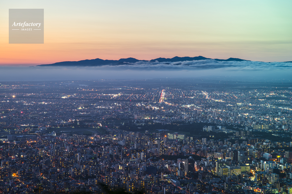 | 作品タイトル | 藻岩山の山頂展望台より望む札幌市街の夕景 | モデルリリース | なし | |