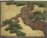 式台 式台の間 貼付 北面 東より4 紙本金地著色 松図 重要文化財