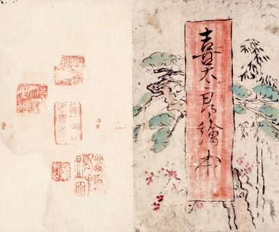 喜太郎絵本(26面) 「先人崋山戯画」題簽渡辺小崋夫人須磨