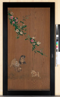 御常御殿 渡廊下 杉戸 南面 東より2 板絵著色 薔薇に狗子図