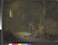 The Interior of a Barn with Two Peasants