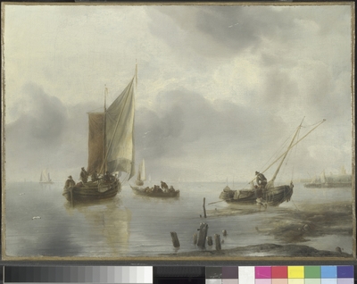 A Coast Scene, with a Small Dutch Vessel landing Passengers