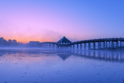 朝霧の鶴の舞橋