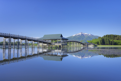 鶴の舞橋と残雪の岩木山