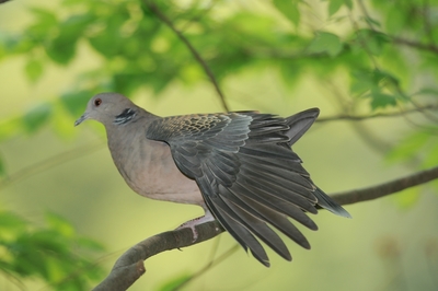 キジバト 羽の手入れ 伸び