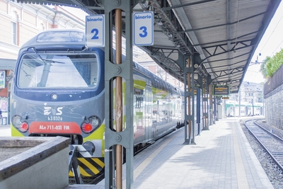 私鉄のノルド線コモ湖駅と電車