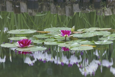 スイレンと水に映る花ショウブ