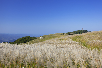 生石高原のススキと青空