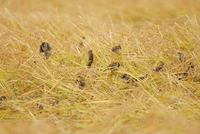 群れで餌を食べるスズメ