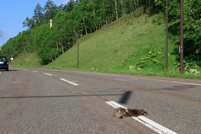 車に轢かれたタヌキ