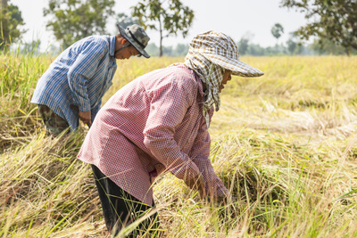 稲刈り作業の女性たち