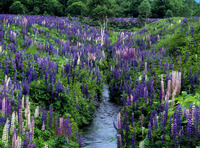 ルピナス咲く小川。十勝三股にて