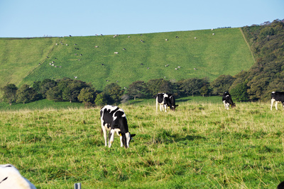 大山と放牧の乳牛