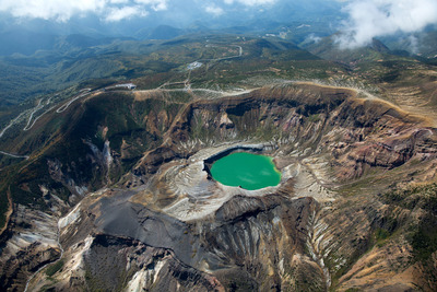 蔵王山,五色岳の御釜周辺(俯瞰撮影)(火山湖),蔵王国定公園