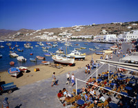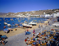 ミコノス島の港とカフェ