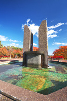 夕森公園 紅葉のもみじ橋と川上川