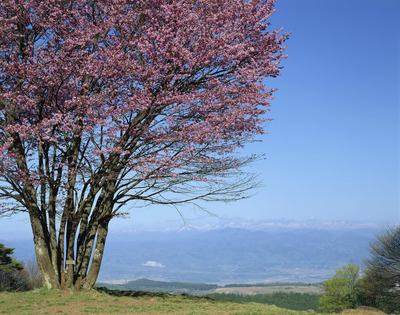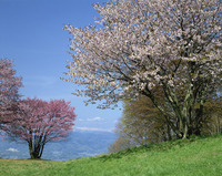 西蔵王牧場の大山桜と朝日連峰 オオヤマザクラ