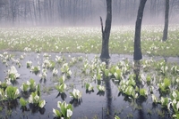 ミズバショウ咲く芽吹きの林。刺巻