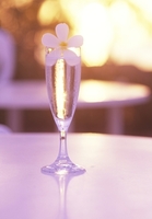 プールサイドの花とグラス