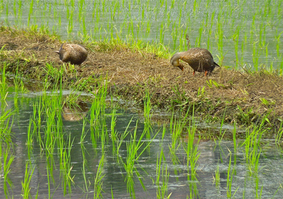 田植えの後 カルガモの利用