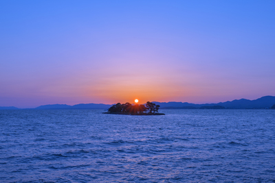 宍道湖の嫁島に沈む夕日