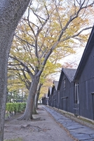 山居倉庫とケヤキ並木の秋