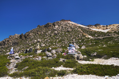 恵山とエゾイソツツジとお地蔵さん