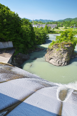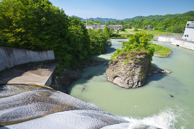 旧北炭清水沢火力発電所と清水沢ダム 夕張川