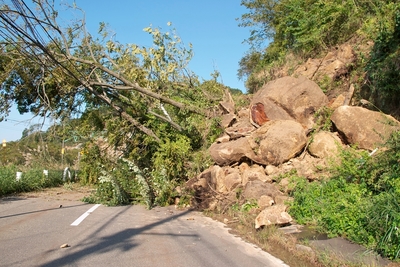 新潟県中越地震 岩崩れで塞がった国道291号線