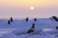 日の出と流氷
