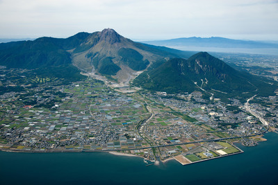 普賢岳(島原湾と深江町丁周辺より)